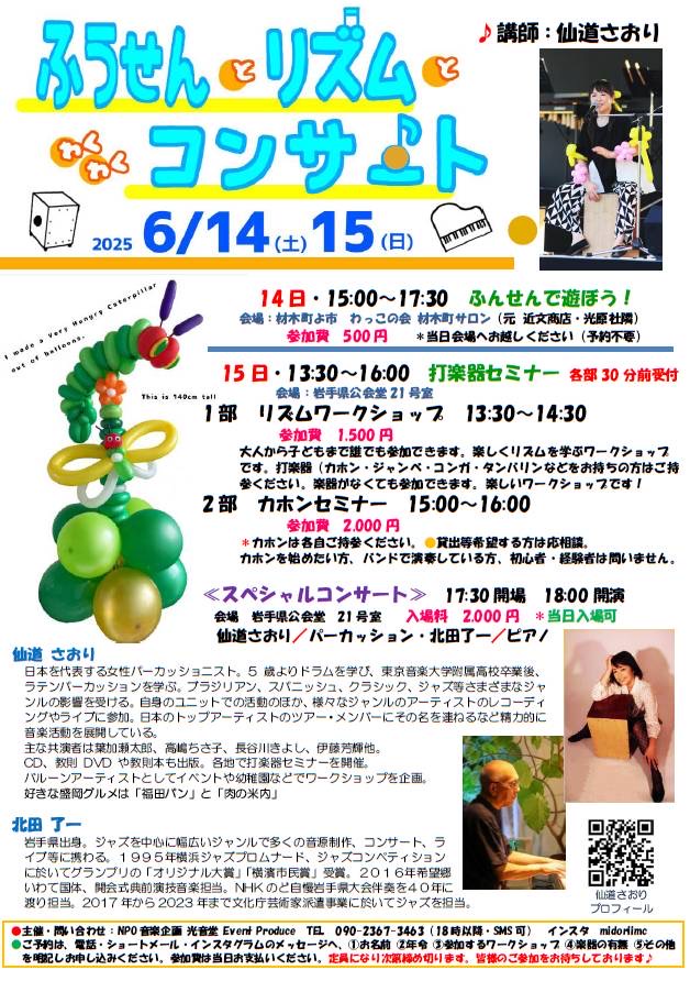 | 岩手県奥州市水沢大町155 初心者コース 19:00-20:00 経験者コース 20:30-21:30 参加費2000円+1D(500円)要予約 カホンレンタル500円 当日参加のお子様、ご希望の方にはバルーンプレゼント! 予約、問い合わせ jazz.tango218@gmail.com 「カホンワークショップ」係 |